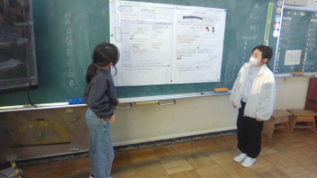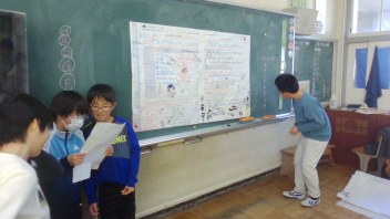 • 3年生の学習の様子です。社会科でまとめた学習内容を分かりやすく、聞きやすいように発表しました。