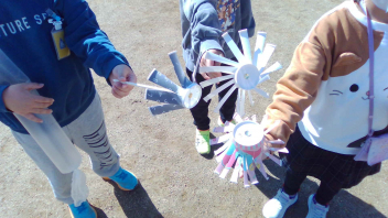 • 生活科「ふゆをたのしもう」で、風を利用したおもちゃで遊びました。