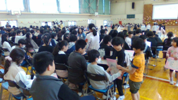 最後に、6年生が1年生から5年生一人一人の良いところが書いてあるメッセージカードを渡しました。