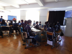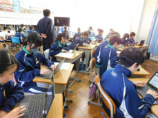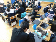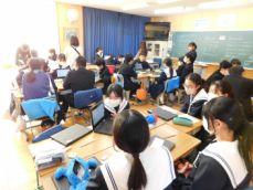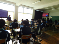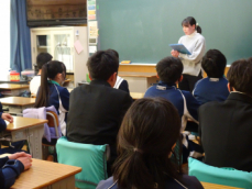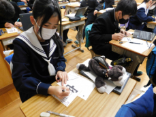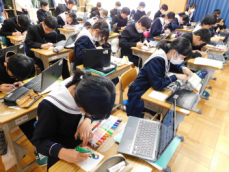 2年生は、浜松をPRする「願いを込めた手ぬぐいづくり」です。浜松は餃子やウナギだけじゃないぞ!と、浜松の良いところをたくさん見付けてデザインしました。