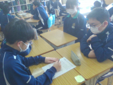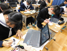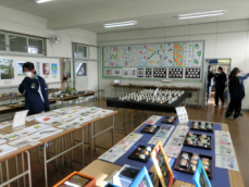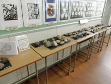 3年生は、篆刻(石のハンコ)です。印鑑と持ち手の部分を根気よく彫り上げ、最後は磨いて美しい仕上がりになりました。3年生の卒業制作にふさわしい作品です。公開は、30日まで。