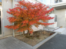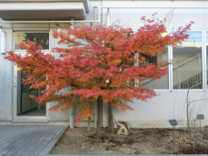 校舎北側に植えてある紅葉が 寒さの中でも静かに彩り、学校に温かな表情を添えています。