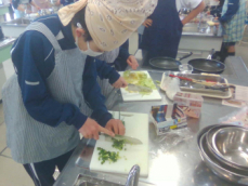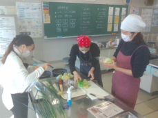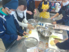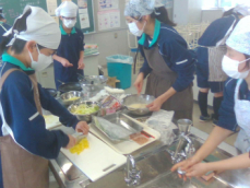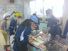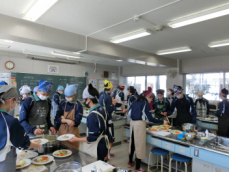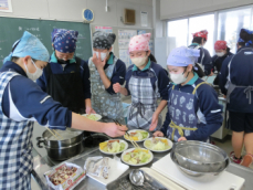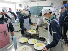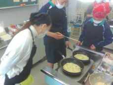 1年生が調理実習で浜松の郷土料理「遠州焼き」をつくりました