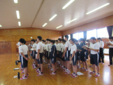 駅伝部の生徒による部の紹介があり、その後校長先生から「たすきは大切に、丁寧に、そして力強く繋いでください」と激励の言葉をいただき、選手代表にたすきが授与されました。
