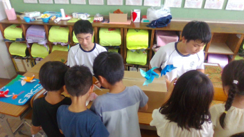 • 水曜日に引き続き、本日は3年3組と4組の代表生徒が広沢小学校を訪問して、商品を販売しました