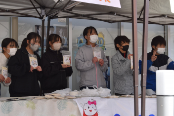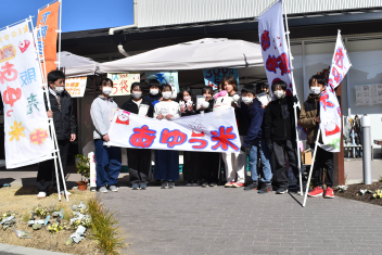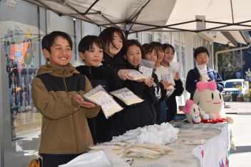 全校で育ててきた「あゆっ米」を5、6年生が地域のお店で販売をさせていただきました。