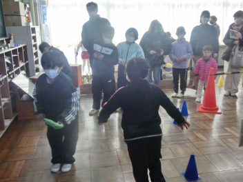 「あやとり」、「こま」、「かみひこうき」など、子供たちはとても楽しそうに遊んでいました。