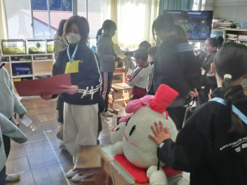 縦割りグループで下阿多古小学校の子供や教職員に関わる「下小かるた」や、プレゼント贈呈、委員会の引継ぎ、思い出のスライドショー等、感動の会となりました。