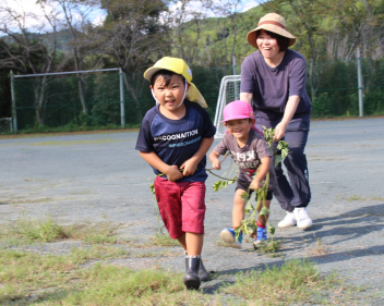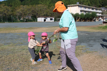 「つる」を使ってひと遊び・・・ひっぱりっこ、先生に負けるな~
