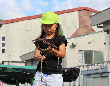 つるを引っ張ってみたら・・・すごく長かったね大きなお芋が出てくるかな