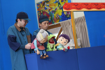 人形劇が終わった後は可愛い人形たちと握手をしました。wink