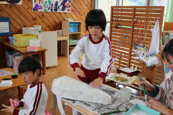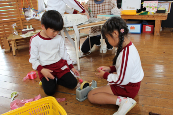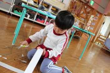 今日はもり組さん、ほし組さんが真剣な表情で何かを作っていました