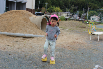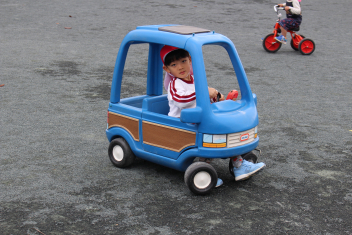 縄跳びや竹馬などに挑戦する年中・年長さん、土のごちそうづくりや乗り物などで遊ぶ年少・満3歳さん、戸外の気持ちよさを存分に感じながら、遊ぶこどもたちでしたsad