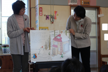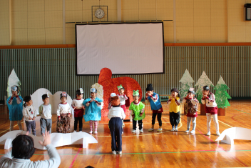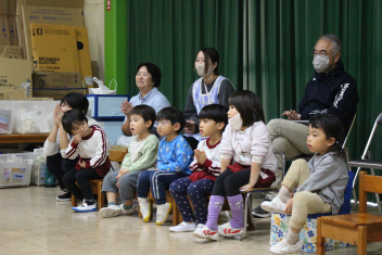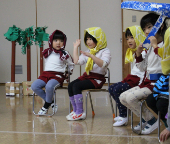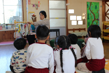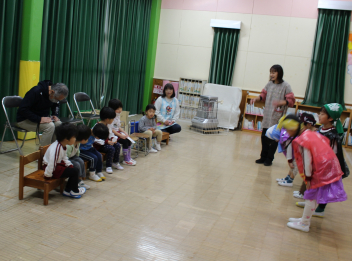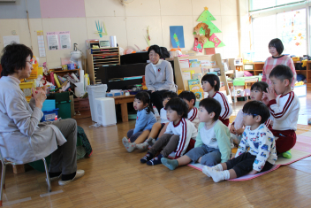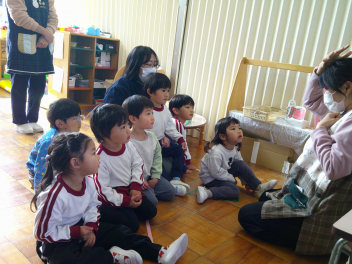 素話を聞いたり、歌を一緒に歌ったりしてお話の世界に入り込んだ子供たちでした。laugh