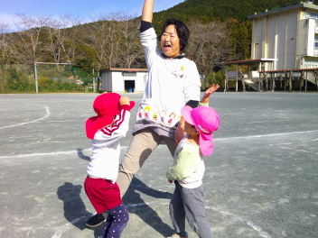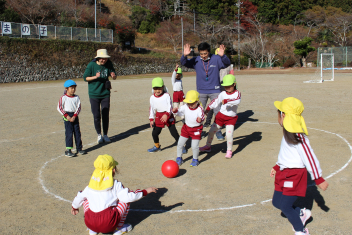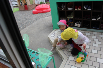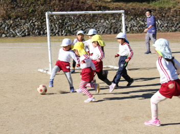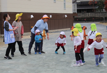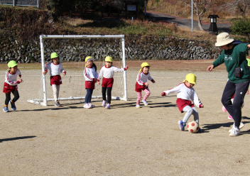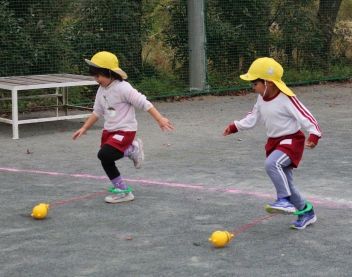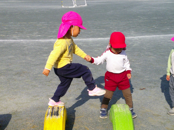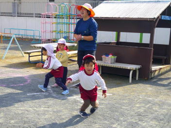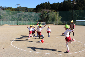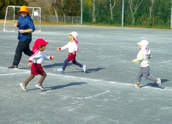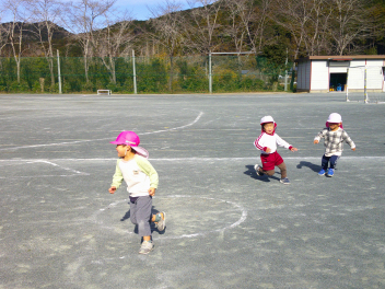 年少組と満3歳組は運動場で自分のやりたいことをしたり、みんなで
