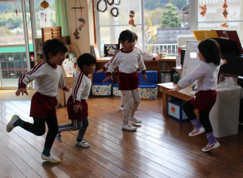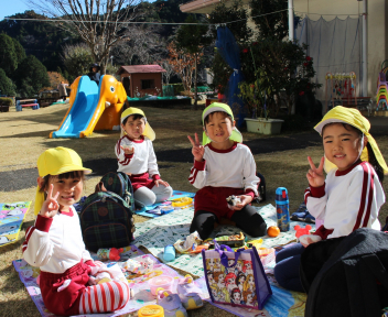 小春日和の良い天気で、戸外で思い切り遊んだ子供たちでした。