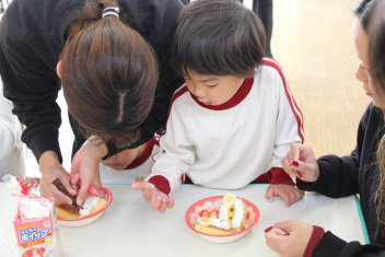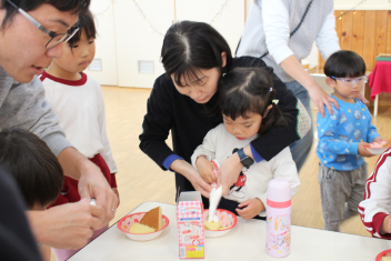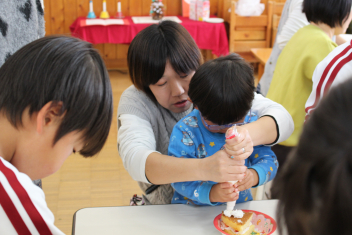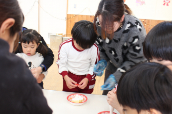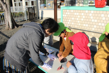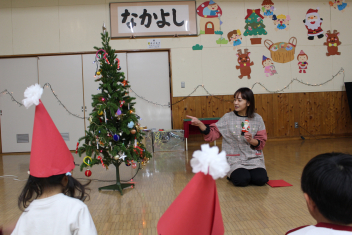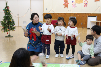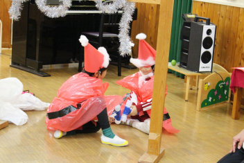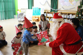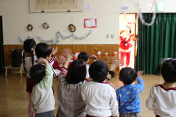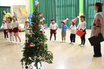 • 子供たちは今日はクリスマス会ということでいつもよりも笑顔で元気よく登園してきました。