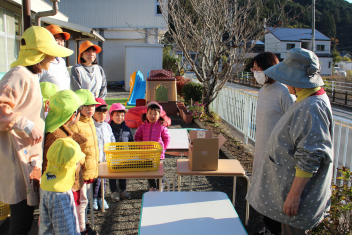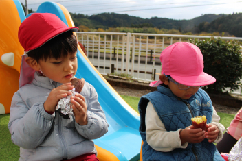 今日は上阿多古幼稚園のお友達と一緒に『焼き芋会』をしました。