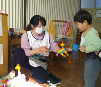 佐久間幼稚園のお姉さんに靴を脱ぐことを手伝ってもらったよwink