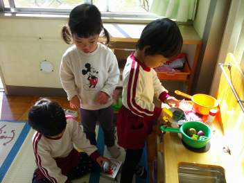 今日は年長組と年中組が楽しいことを4人で話し合っていました。wink
