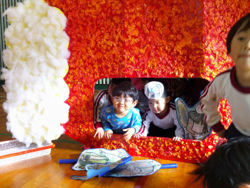 何かに変身するのかな?楽しみがいっぱいのこどもたちです