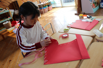 サンタさんの返事には、『おてがみありがとう すてきなみんなにあいたいな ながぐつをよういしておいてね』と、書いてありましたクリスマスの製作をする中で、ちょうど長靴(ブーツ)づくりを始めていたこどもたち。サンタさんからの返事を読んで、長靴づくりの仕上げにも気合が入ります