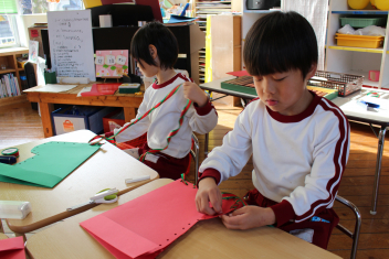 ほし組さんは、長靴づくりでホッチキスに挑戦!