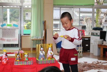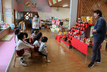 先生が「ひな祭り」の由来をお話ししてくれました。みんな興味深そうに聞いていました
