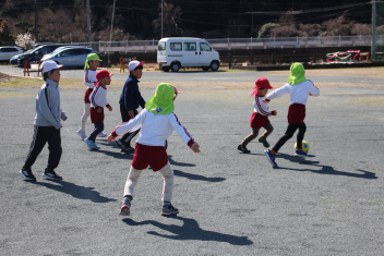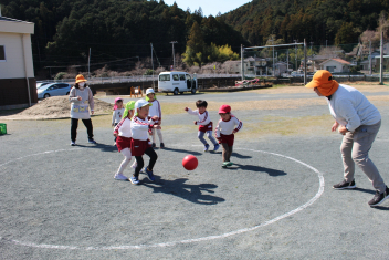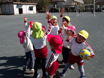 •  年少・満3歳は“むっくりくまさん”に興味を示し、園庭に出ると「先生、くまさんやろう!」と誘って、遊び始めています。smiley年中・年長組はサッカーが大ブームです!広い運動場をボールを追いかけながら元気いっぱい走って楽しんでいます。そんな楽しそうな姿を見て、年少・満3歳も仲間に入れてもらい遊んでいます。19日の様子です。wink