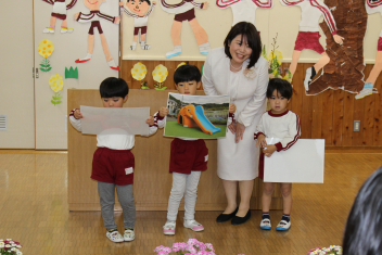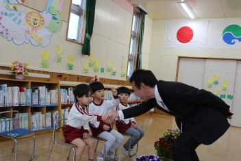 あいにく雨の入園式でしたが、年長・年中組のお兄さんたちが笑顔で迎えてくれて、新しいはな組さんもとてもうれしそうでした。少し緊張している姿が見られましたが、和やかな雰囲気の入園式でした。wink