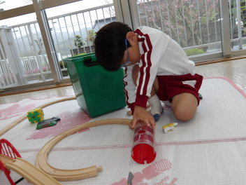 線路が欲しい!とテープを使って線路づくりが始まりました!