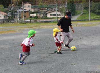 • こどもチーム対先生チームでサッカーをしました。今日はどちらのチームが勝ったでしょうか