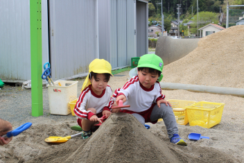 今日は幼稚園の周りのお掃除もしてくれました。お友達と協力して「ヨイショ、ヨイショ