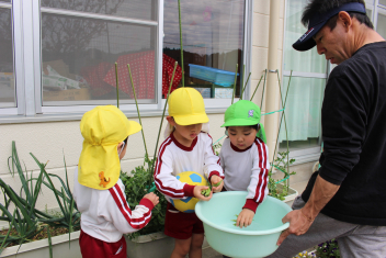 そんな幼稚園ですが、こどもたちが植えた球根や野菜がすくすくと育ってきていますので、お知らせします。wink