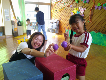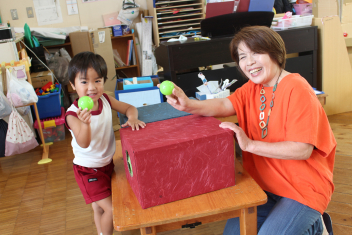 思い切り遊んだり、室内では、上阿多古幼稚園の友達が遊びたいものを持ってきてくれて