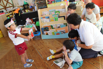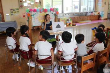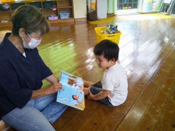今日は読み聞かせボランティアのお母さんがきて