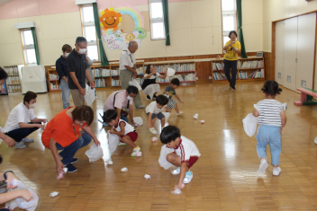 「気持ちを合わせて:ボールの色合わせ」年長が絶対やりたいという「餅ひろい」、