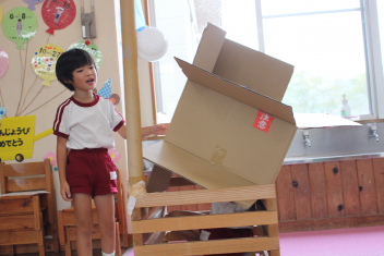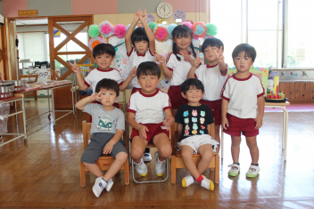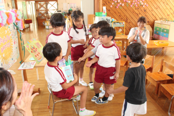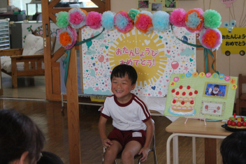 外で思い切り遊んだ後は、年長組さんの友達の誕生会をしました。