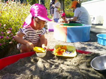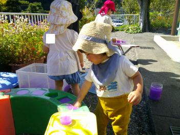 色水や砂で遊びました。