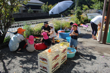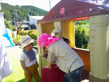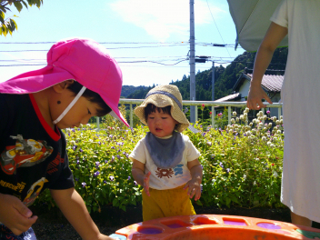 はなぐみさーん、ももぐみさーん、水掛けてもいいよ!!