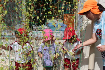 午後は、食後に年少たちはブドウ狩りをしたり、“おはなしてくてく”の方の