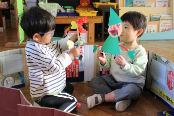 出来上がった小人を持って、お話したり、かくれんぼしたり