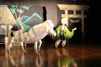 今日は交流保育で草笛会による人形劇を上阿多古小学校で見ました。