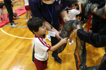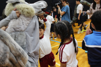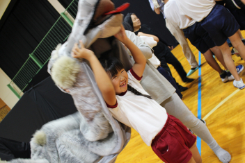 人形の迫力に驚き、話の内容に感動したこどもたちwink