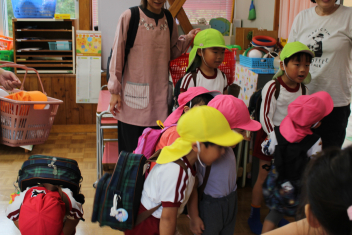 昨日、サツマイモの試し掘りをしてくれた年長・年中組さん。