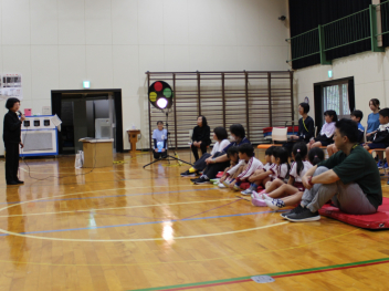 遊戯室に集まって、園長先生のお話や保健の話を聞いたり、