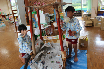 先週末は地域のお祭りがありました!幼稚園に来るなり、