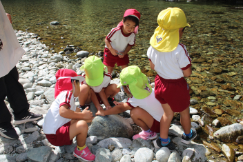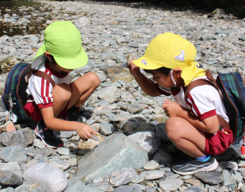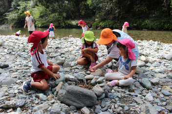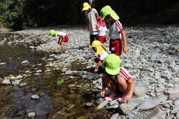 買い物体験をしたり、河原まで歩いて遊んだりして秋空の下で