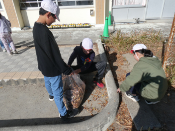 しのささっ子たちが、昼休みに、校庭の落ち葉をたくさん拾ってくれました。