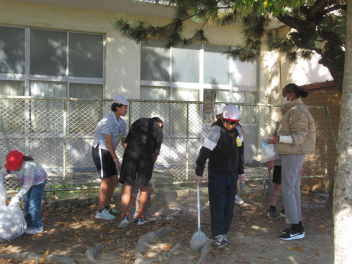 先生も力を合わせて、学校をきれいにする活動をしました。sad
